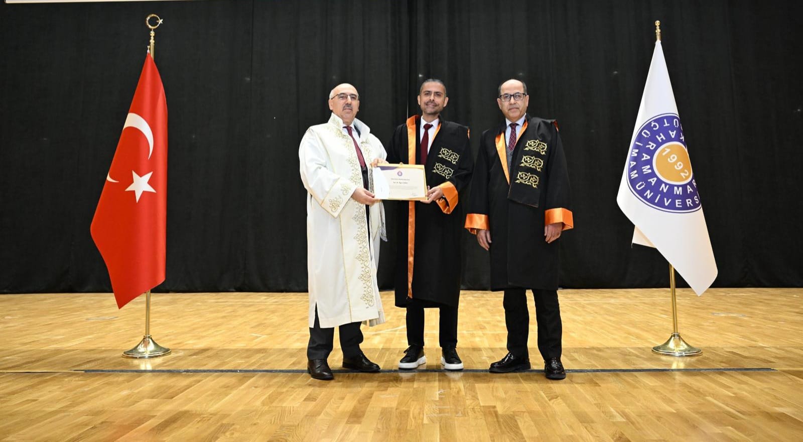 Kahramanmaraş Sütçü İmam Üniversitesinde düzenlenen “2025 Yılı Akademik Atamalar Belge Töreni” kapsamında, bölümümüz öğretim üyesi Doç. Dr. İlyas YAKUT, akademik atama belgesini KSÜ Rektörü Prof. Dr. Mahmut AK Hocamızdan almıştır.
